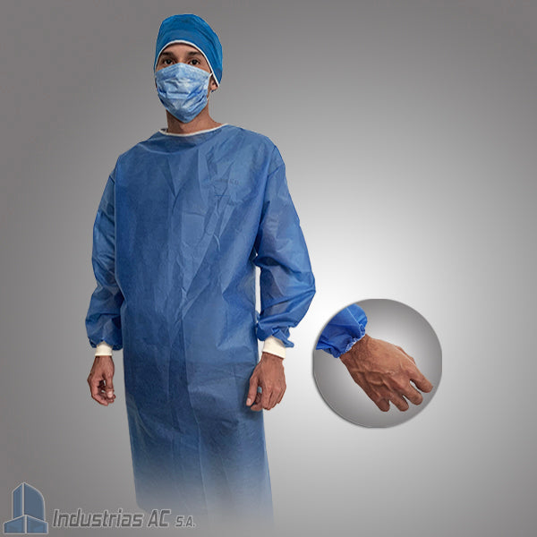 Bata Desechable Azul Manga Larga con Jareta Protección Higiénica Unitalla-3