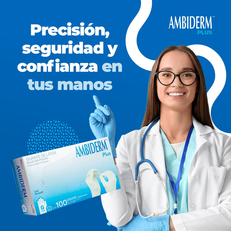 Guante de Látex Plus Azul Ambiderm Bajo en Polvo 100 Piezas