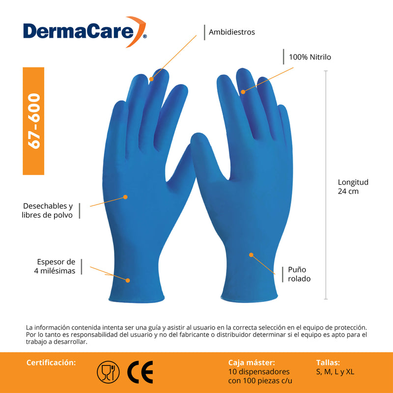 Guante de Nitrilo Azul Cielo Derma Care 67-600 Sin Polvo Caja con 100 Piezas-1