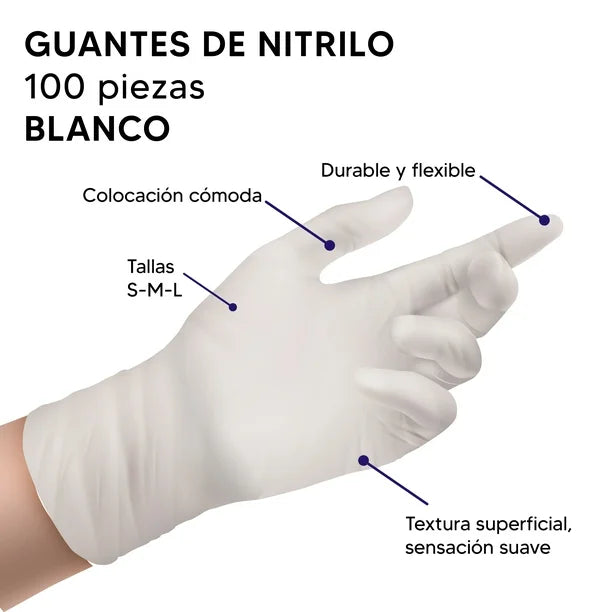 Guante de Nitrilo Blanco sin Polvo TAC 100 Piezas