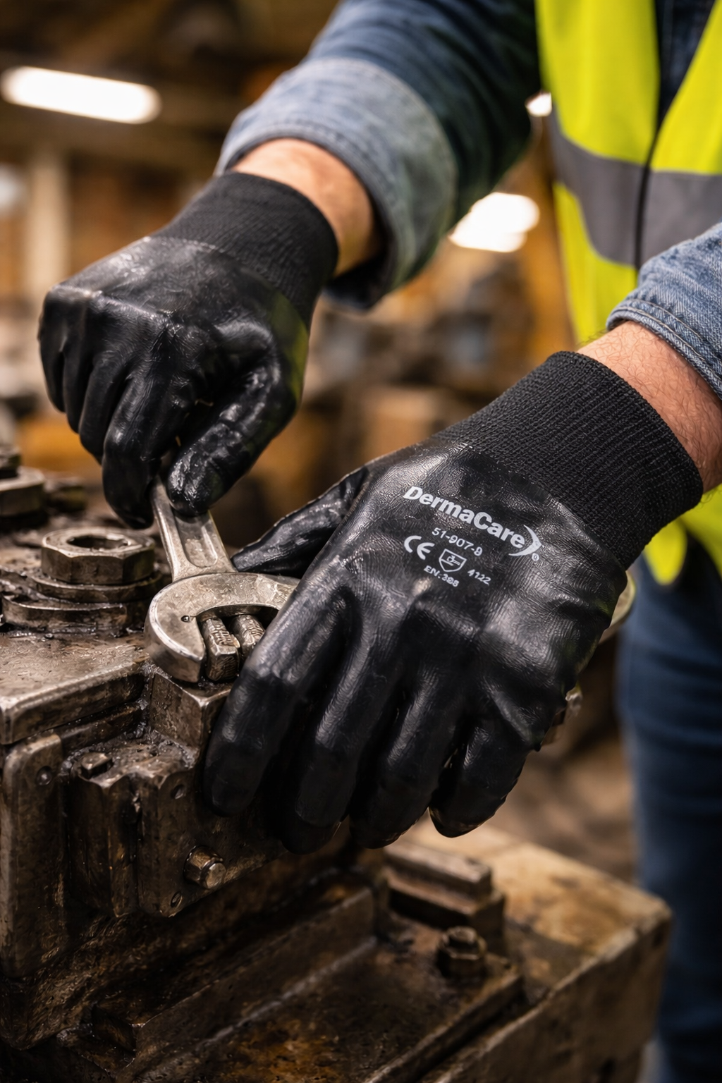 El Guante de Nylon Recubierto de Nitrilo 51-907 es ideal para trabajos industriales que requieren protección, agarre seguro y alta resistencia.