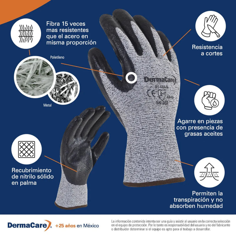 El Guante DermaCare 51-660 está diseñado para brindar protección, comodidad y excelente destreza en trabajos industriales y de precisión.
